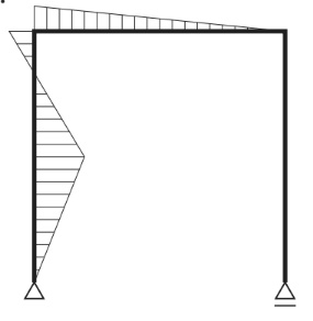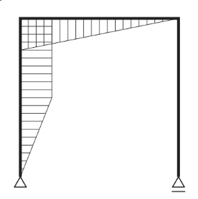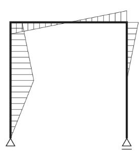 図に示すラーメンに集中荷重Pが作用したときの曲げモーメント図として、正しいものはどれか。